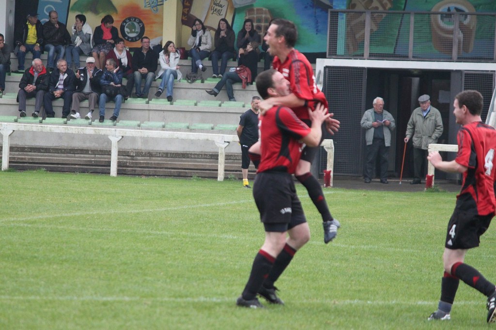 C'est Samuel ROBIN qui a égalisé dimanche sur coup-franc.Il a une manière bien à lui d'exprimer sa joie après un but : il saute dans les bras du premier coéquipier qu'il croise.Il suffit de le savoir pour ne pas se faire surprendre.Frédéric et Giovanni ont testé.