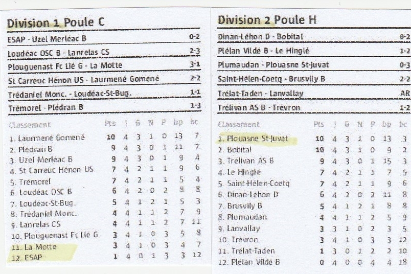 J'ai préféré mettre le classement de l'équipe A ainsi que celui de ces 2 prochains adversaires...Et rappeler qu'il y a entrainement mercredi et vendredi à 19h...