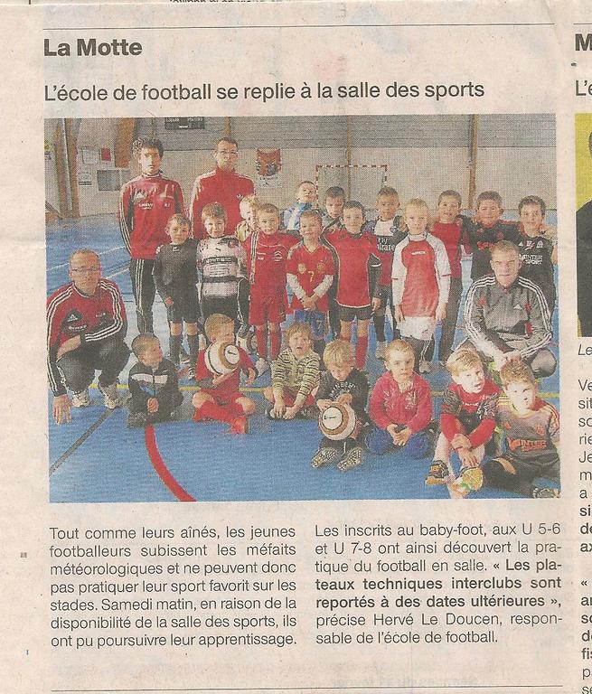 L'ECOLE DE FOOT A LA SALLE DES SPORTS.VU DANS LE OUEST FRANCE DU 11 FEVRIER.