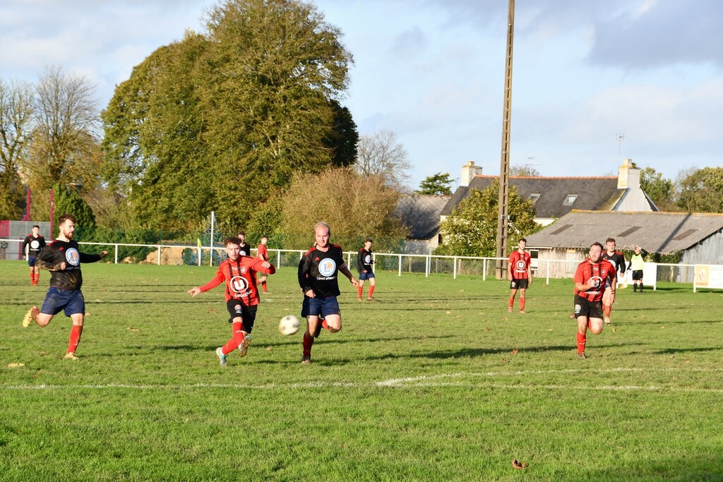 Ouverture rapide du score par Tom parti dans le dos de la défense et 2 à 0 sur un pénalty d'Erwan. Score à la mi-temps. Ce fut plus compliqué en seconde mi-temps. On a pourtant eu des occasions de marquer, mais gardien adverse et maladresse n'on pas permis d'inscrire ce 3ème but. La Croix Corlay en a profité pour réduire le score. Merci au rentrant Kévin, qui plein de sang froid, marquera le 3ème but et libérera l'équipe. On reste second au classsement.