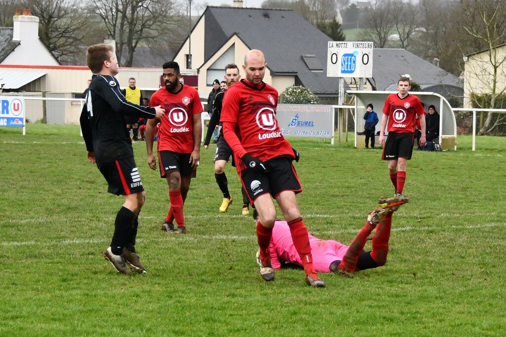 La première mi-temps fut plutôt à l'avantage de Ploeuc, monopolisant le ballon, La Motte répondant par des contres.0 à 0 à la mi-temps.En seconde période, Quentin dans les buts et toute la défense resteront solides.Tom, sur une passe décisive de Robbie, marquera l'unique but du match après avoir gagné son face à face avec le gardien.