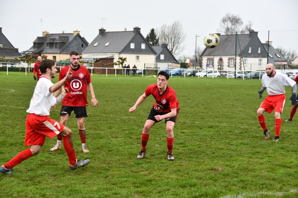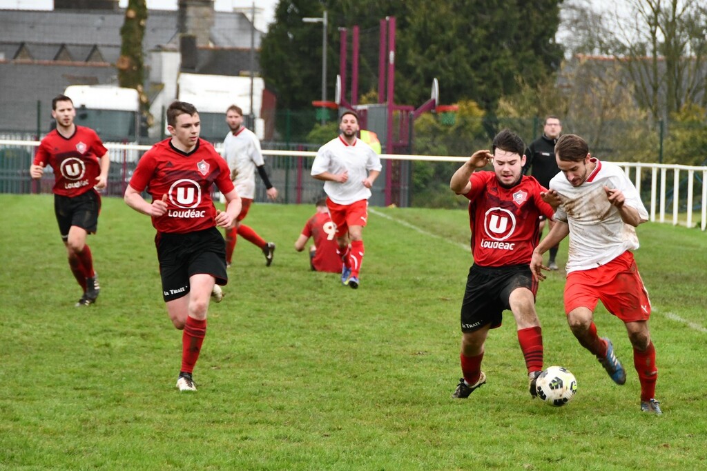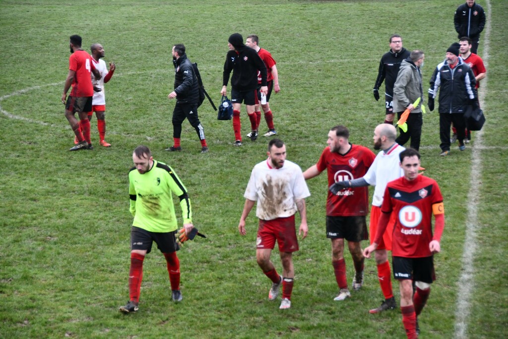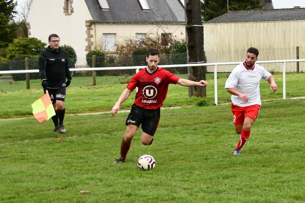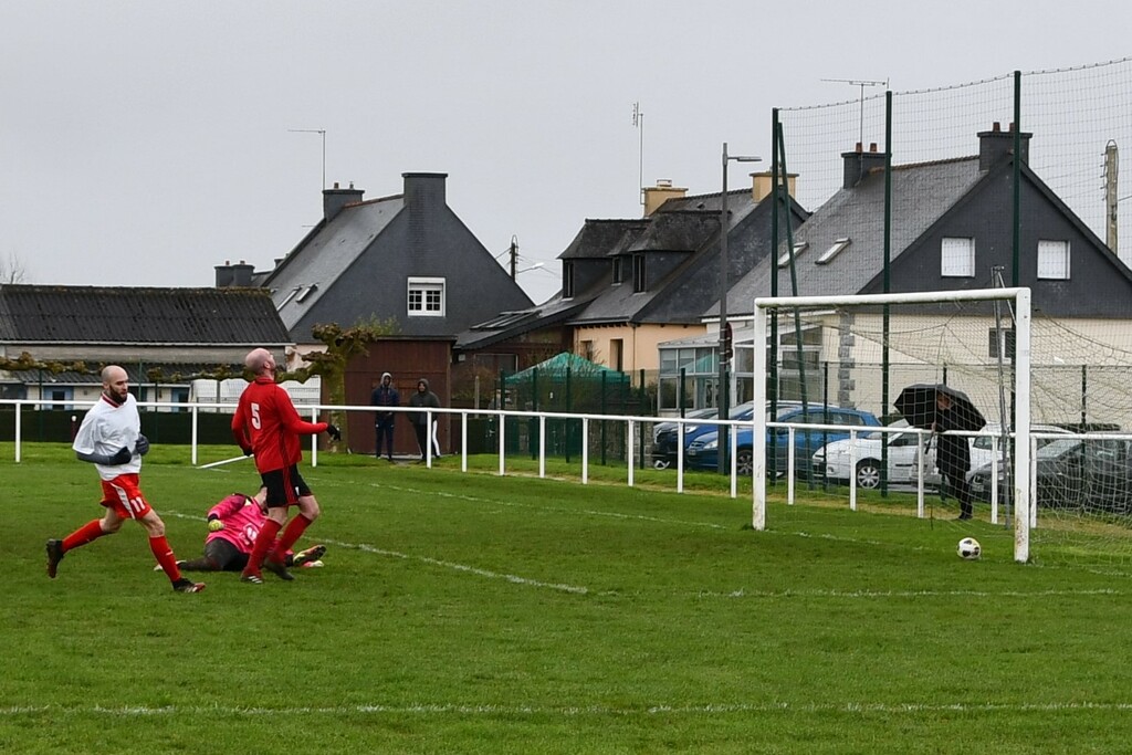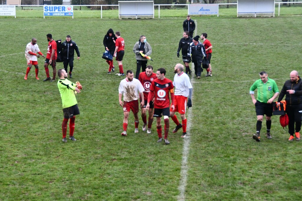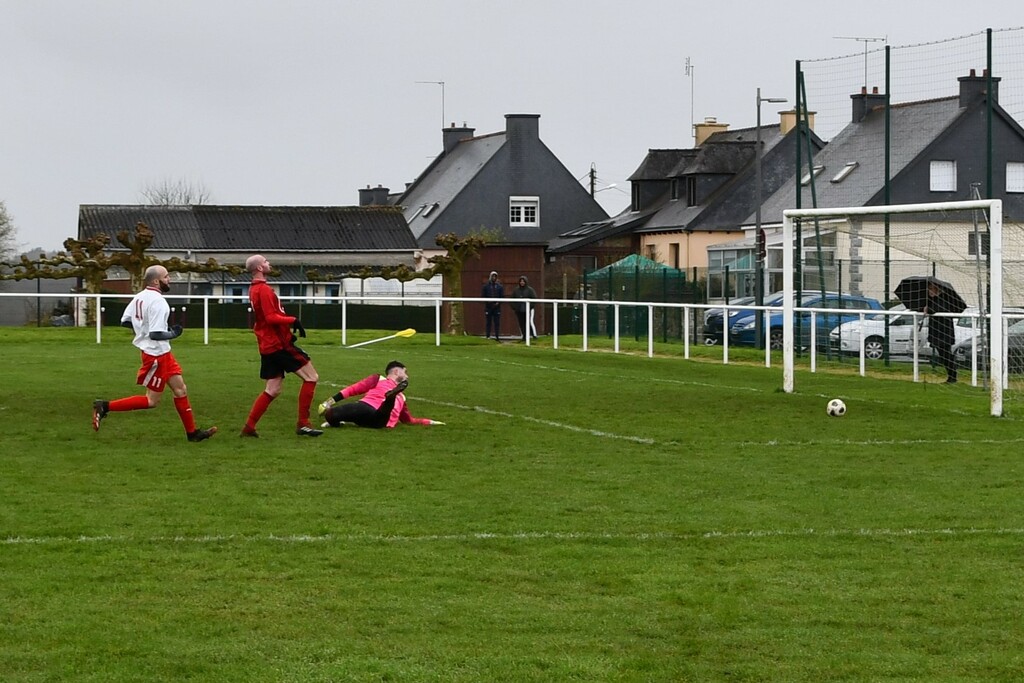 Des regrets car l'adversaire n'a jamais dominé notre équipe.Des regrets car on avait ouvert le score.Des regrets quand Matthieu "se fait une main" tout seul et que l'arbitre siffle pénalty.Des regrets car on a eu les occasions...et plus que Ploufragan.Mais quelle visage différent et plus rassurant que dimanche dernier.