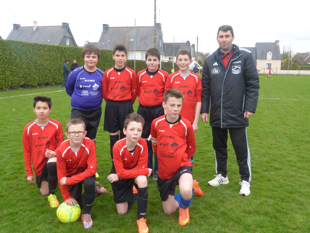 Les joueurs sont : debout Ewen MATHECADE;Yvan HAMON; Florent HAMON; Julien NICOLAS